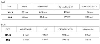 Short top with long sleeve and round neckline. Combined with a tight-fitting skirt to the ground with waistband.